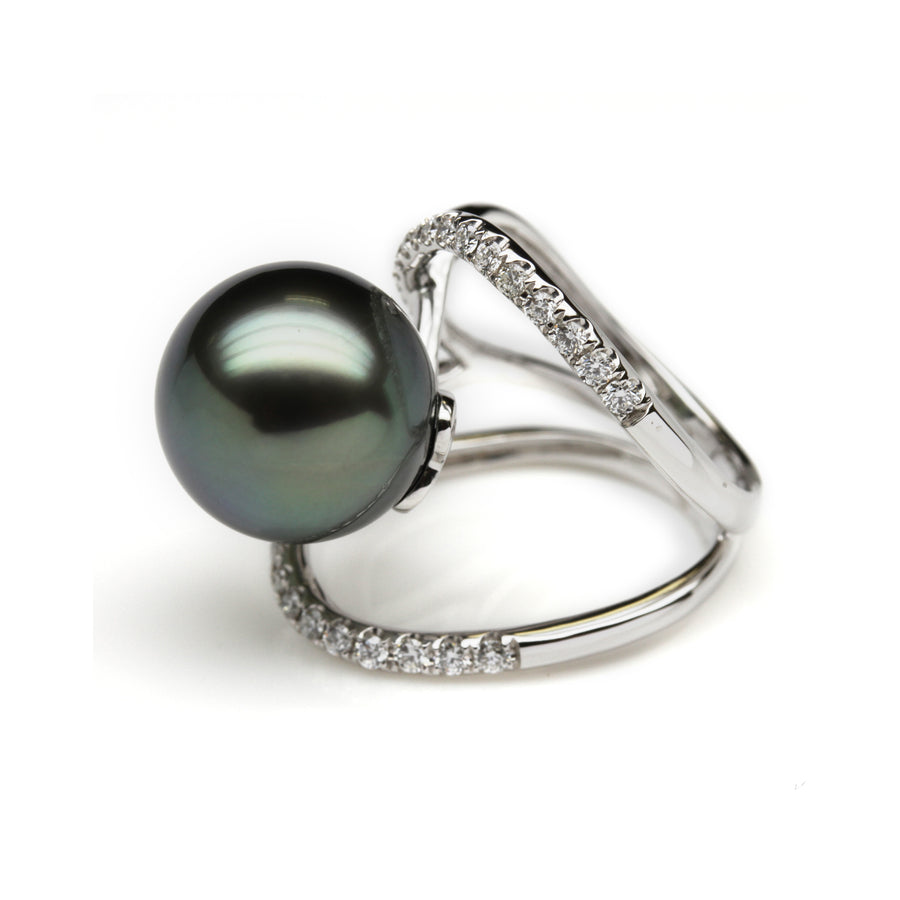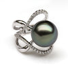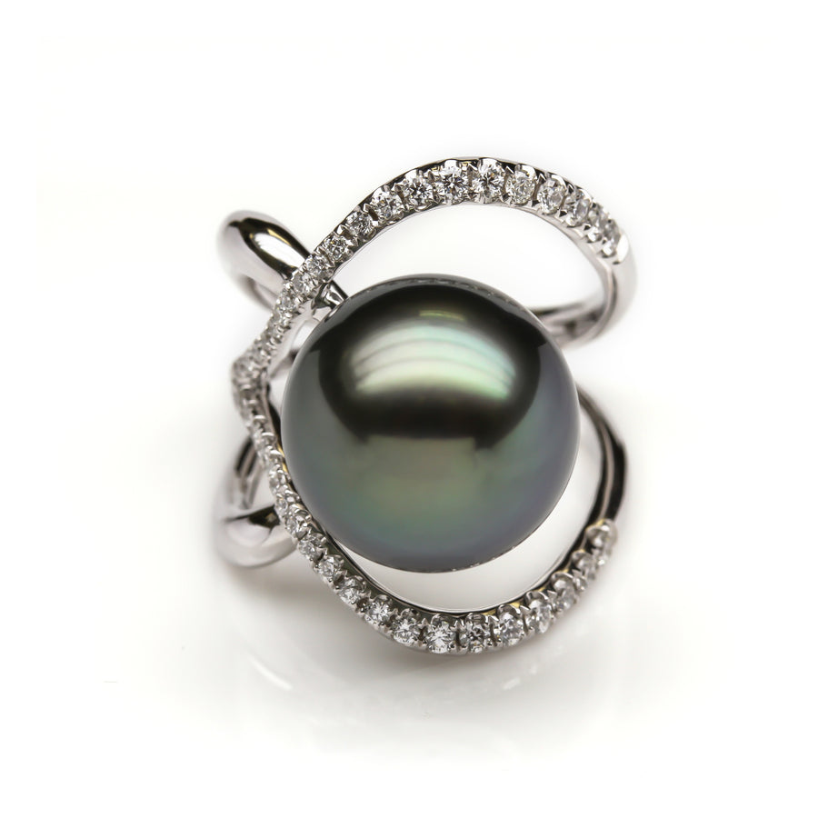 Elevate your style with our 18K White Gold Tahitian Pearl and Diamond Ring. Adorned with a captivating 13.60 MM Tahitian Pearl and dazzling 0.71 Carats of Diamonds, this ring is a true showstopper. Available in stock size 6 and can be resized at your request.