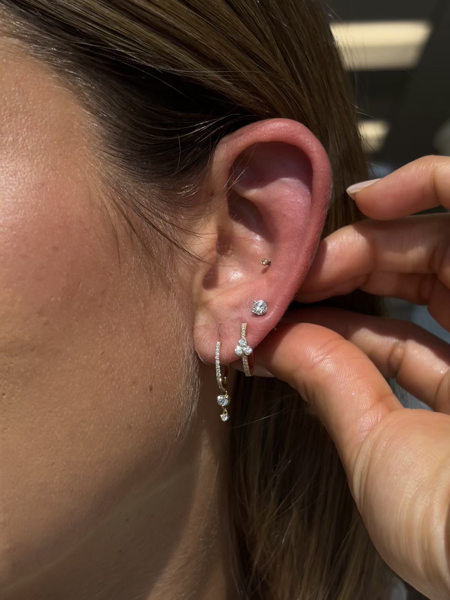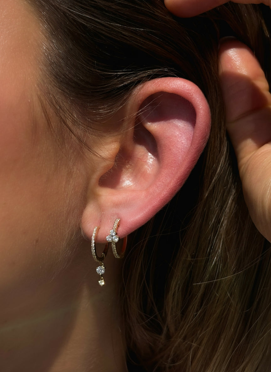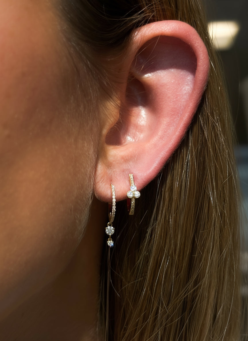 These hoop earrings feature an assortment of delicate natural round diamonds, offering an understated elegance ideal for a feminine style.