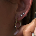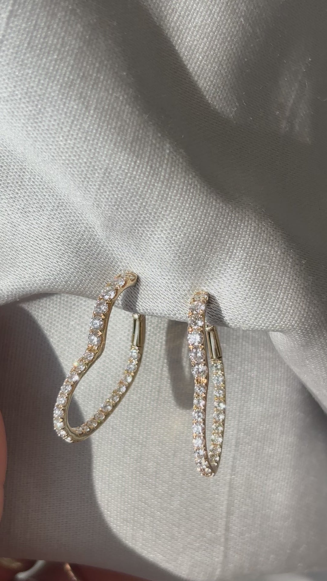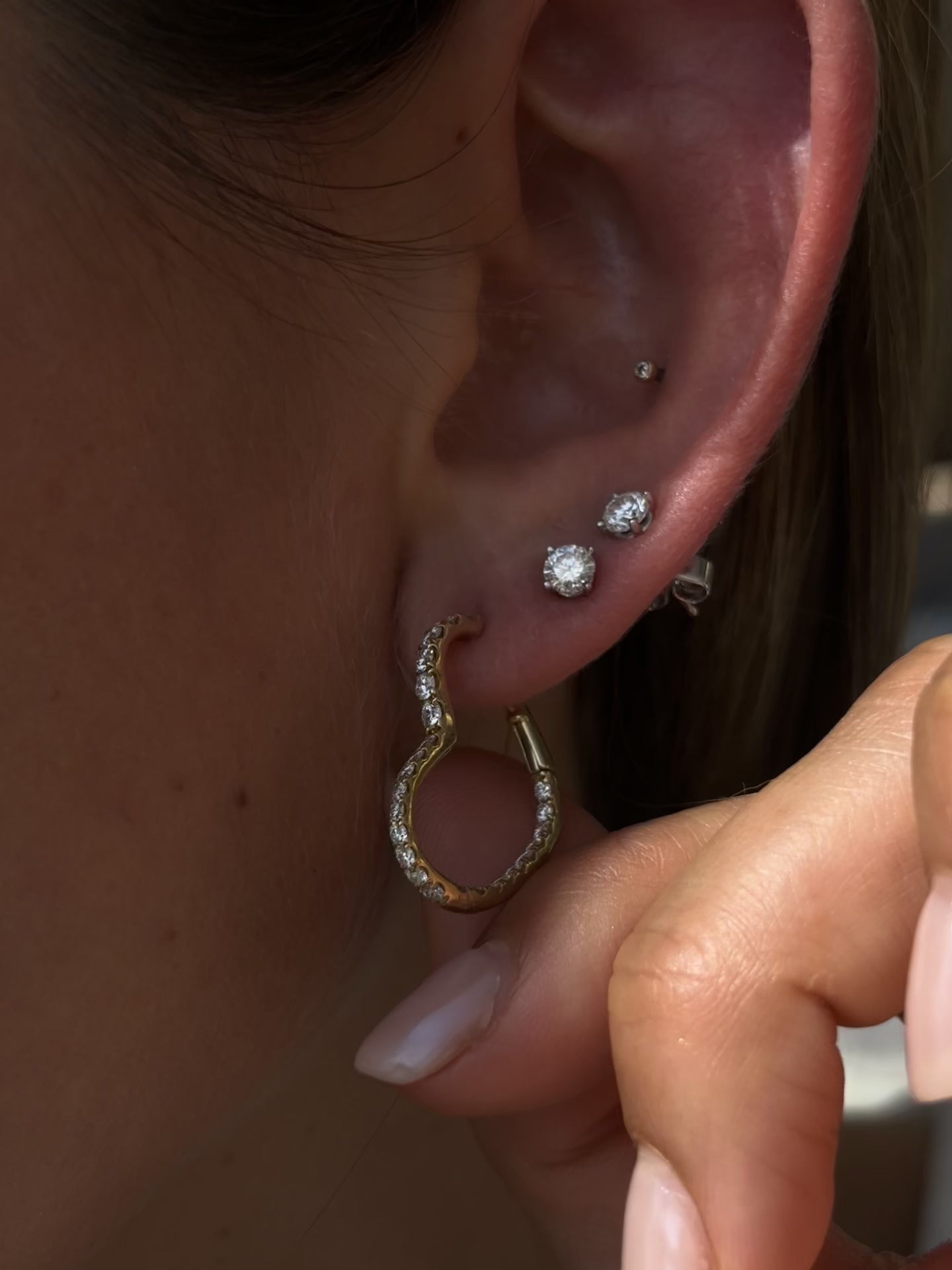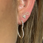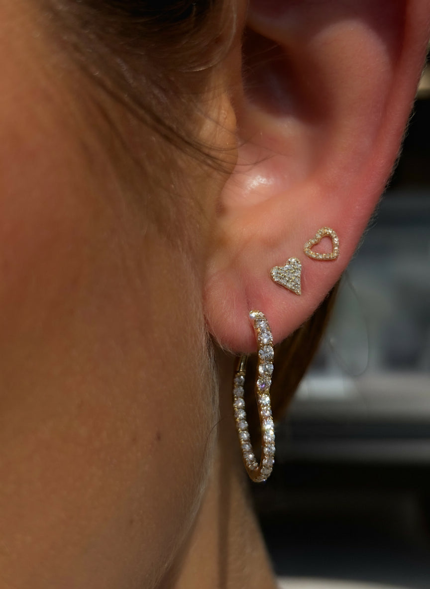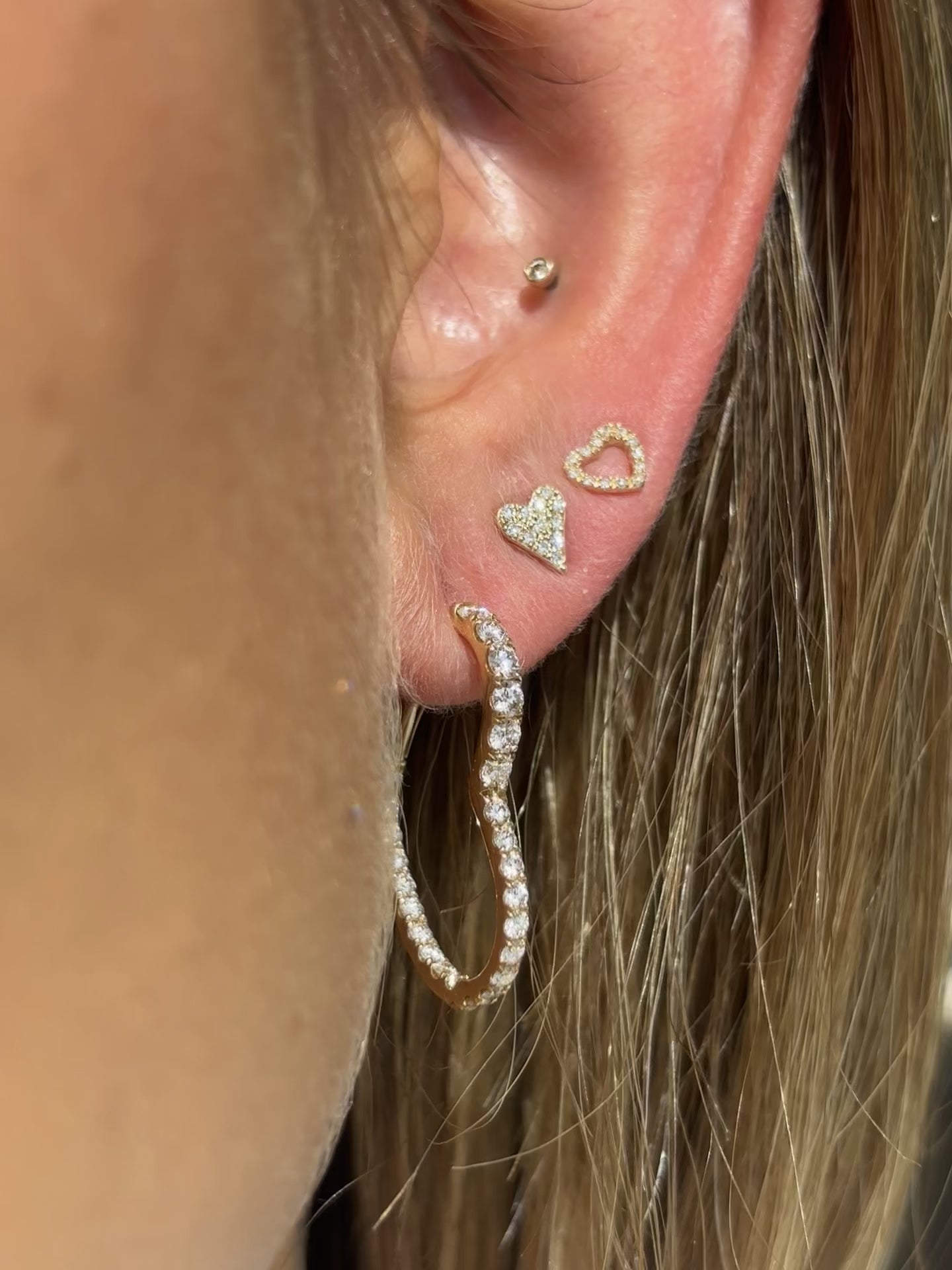 These hoops offer a fun and playful twist on classic design, showcasing a delicate row of graduated natural round white diamonds artfully arranged into the shape of a heart.  Smaller scale than their White Gold counterpart, these are a great option for everyday wearability.