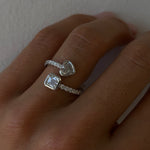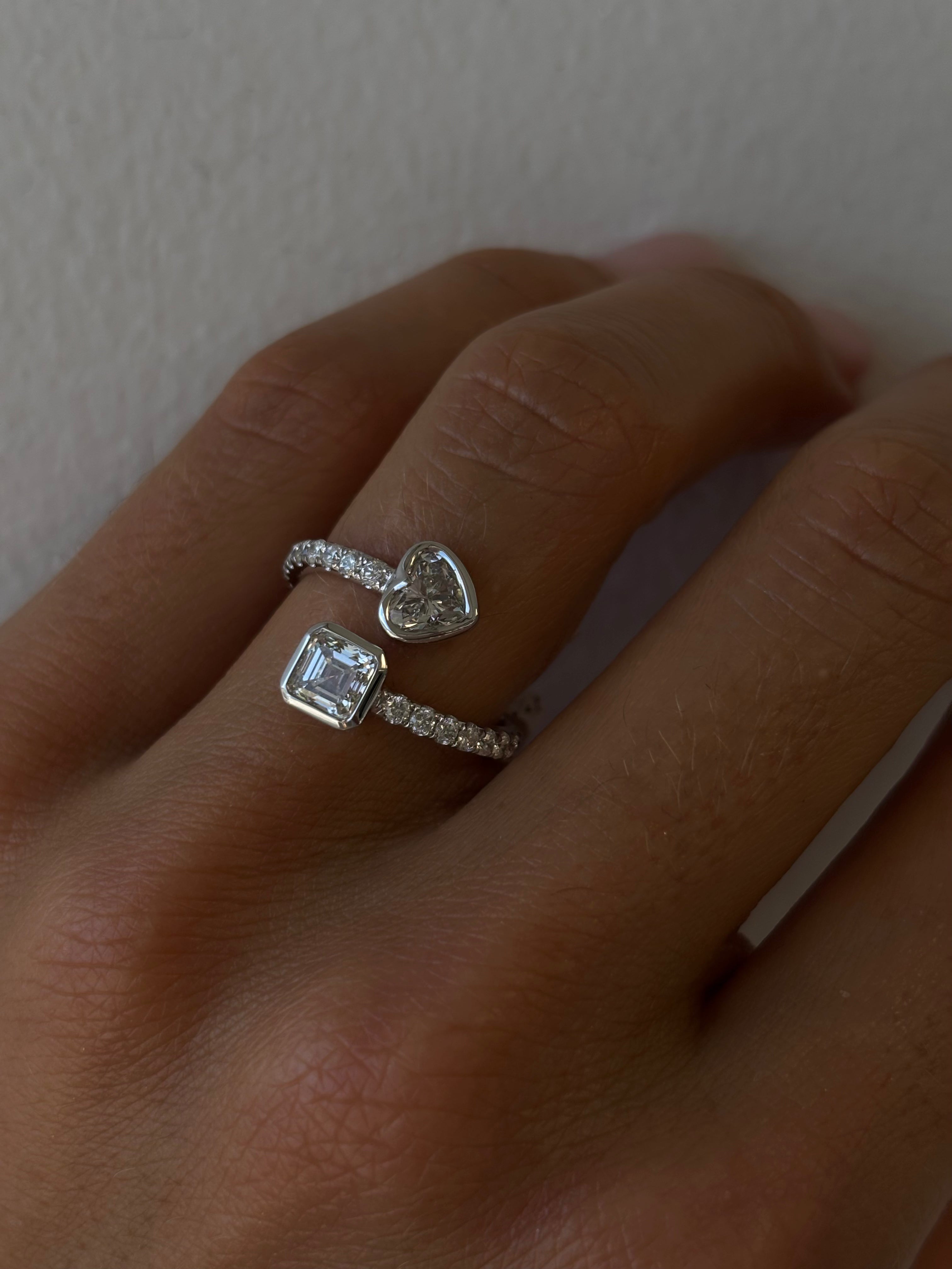 Crossover Diamond Ring with Heart Shape & Asscher Cut Diamond