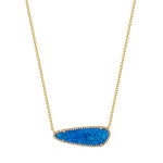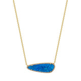 Experience luxury and exclusivity with our black opal necklace. The uniquely shaped black opal is delicately attached to a gold link style chain, adorned with brilliant cut diamonds for a touch of opulence. Add a touch of bohemian style to any look.